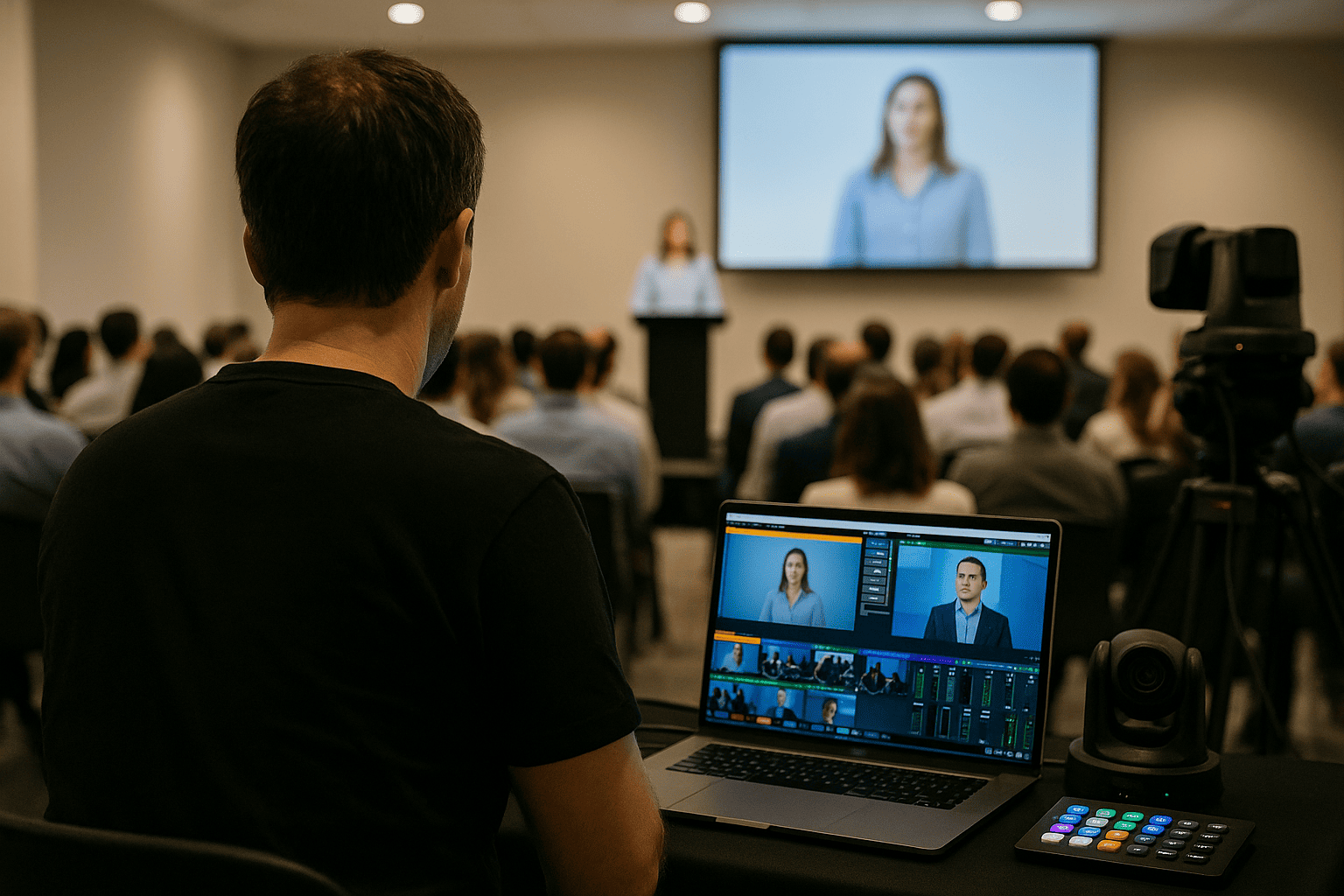 Si tu evento requiere el uso de pantallas de apoyo, contenido dinámico o cámaras móviles, será necesario incorporar perfiles adicionales como un grafista, un segundo operador o un técnico de contenidos, según los objetivos del proyecto.